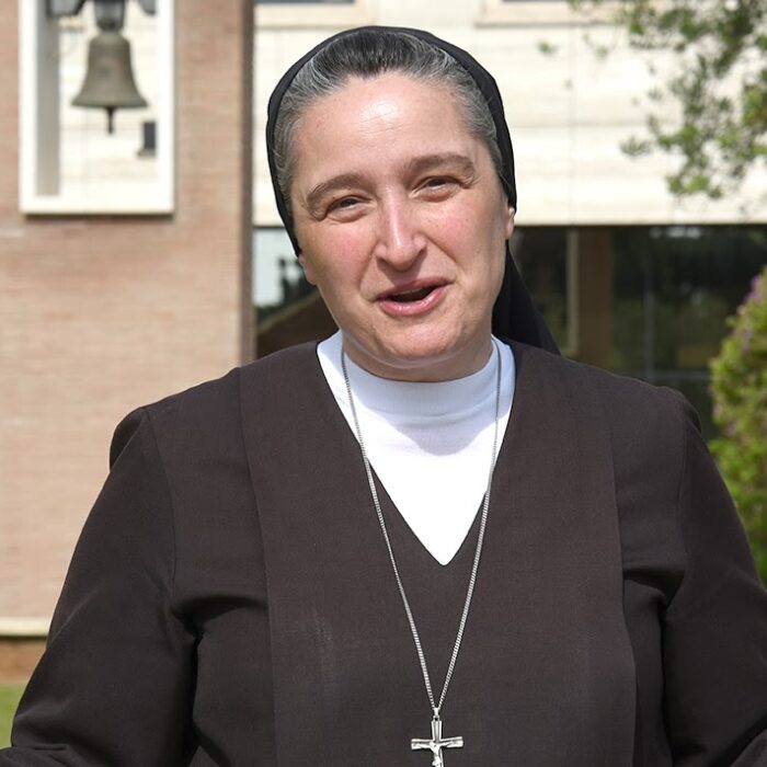 Sister Veronica belongs to the “Congregación delle Franciscanas Alcantarine”.