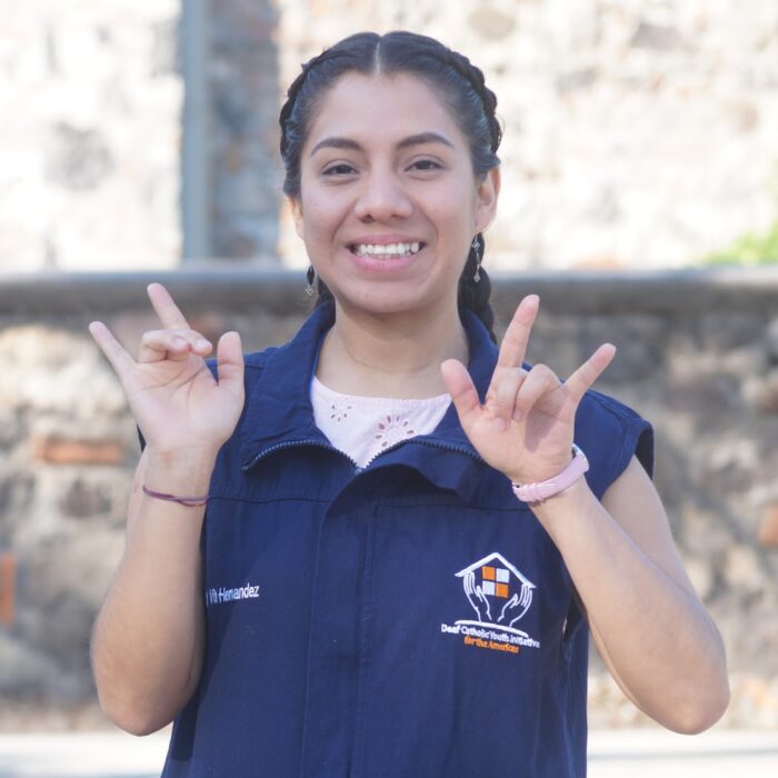 She collaborates with DCYIA since 2015 as a Mexican Sign Language Interpreter in the camps of San Luis Potosí, Oaxaca, Mexico City and in the pilgrimage of Deaf people to Rome.
